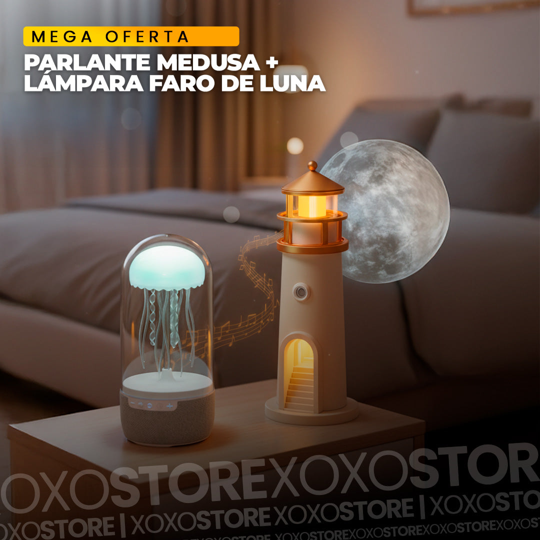 💡 Lámpara Parlante Medusa 🪩 + Lámpara Faro de Luna 🌙